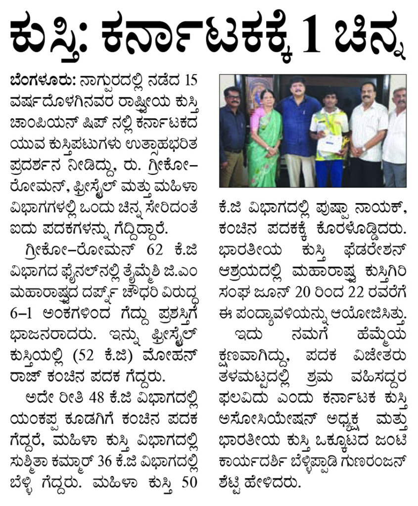 ಕುಸ್ತಿ: ಕರ್ನಾಟಕಕ್ಕೆ 1 ಚಿನ್ನ