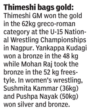 ಅಂಡರ್-15 ರಾಷ್ಟ್ರೀಯ ಕುಸ್ತಿ: ರಾಜ್ಯಕ್ಕೆ 5 ಪದಕ