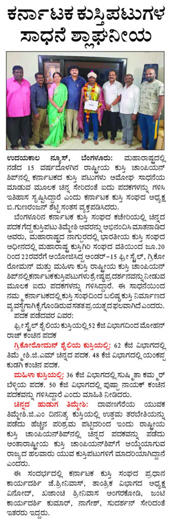 ಕರ್ನಾಟಕ ಕುಸ್ತಿಪಟುಗಳ ಸಾಧನೆ ಶ್ಲಾಘನೀಯ