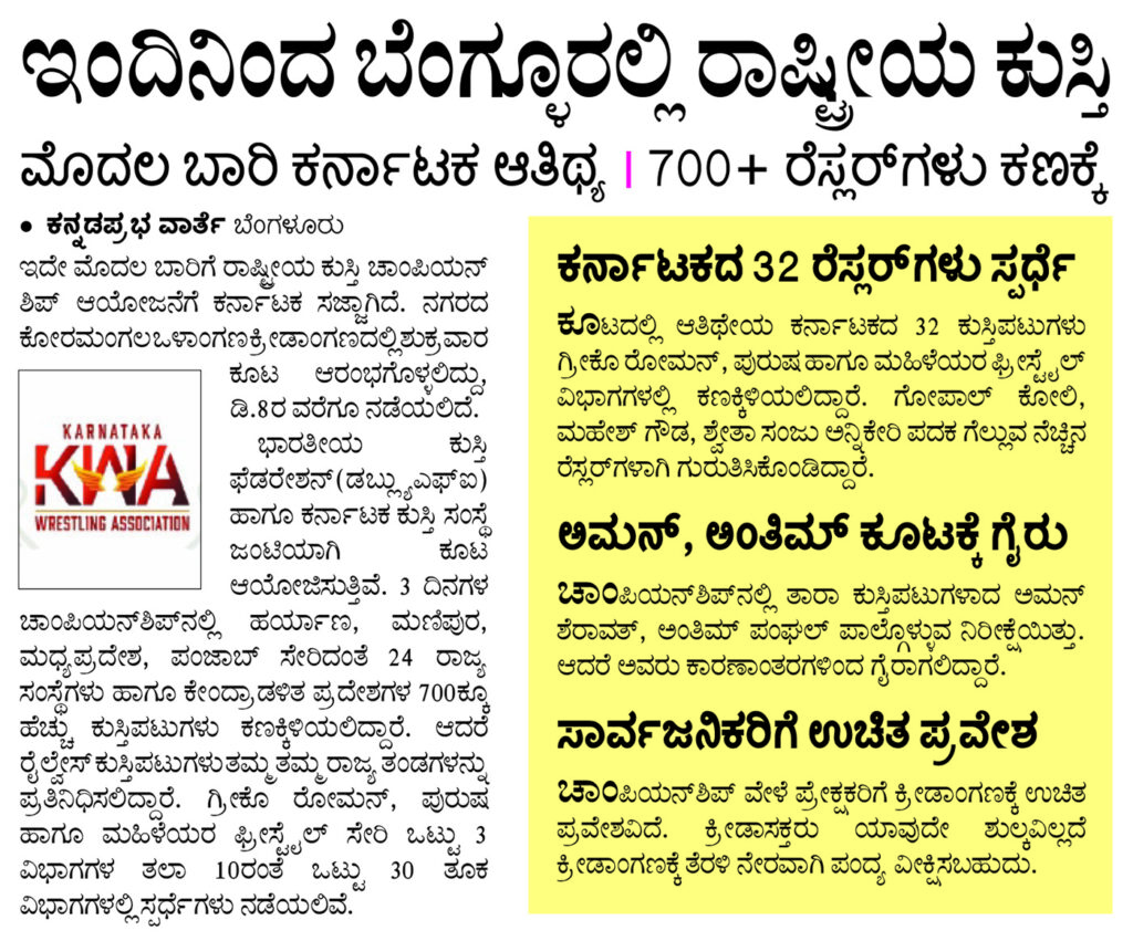 ಇಂದಿನಿಂದ ರಾಷ್ಟ್ರೀಯ ಕುಸ್ತಿ
