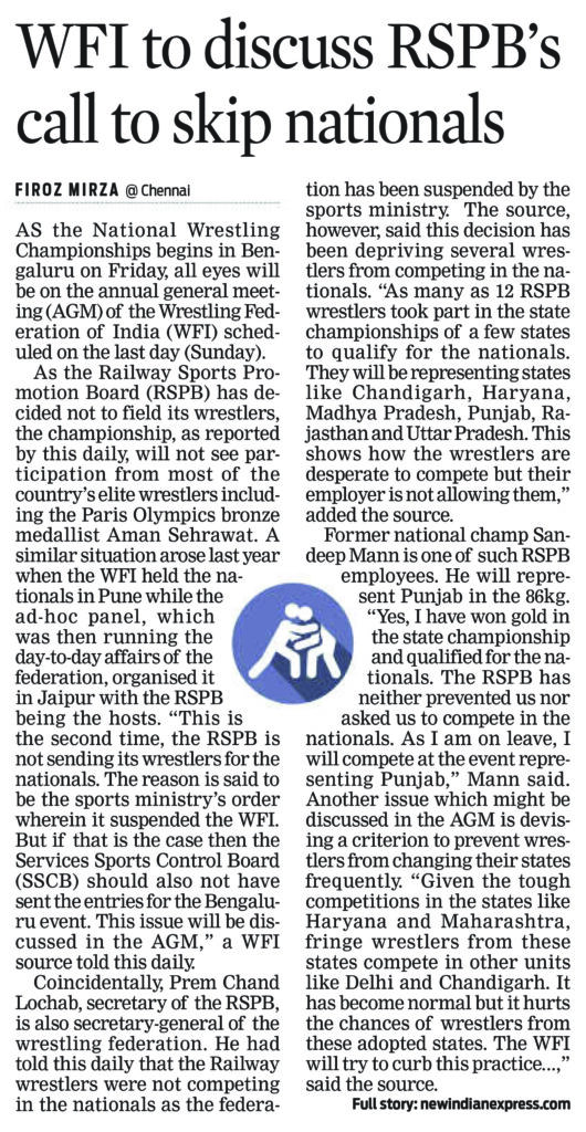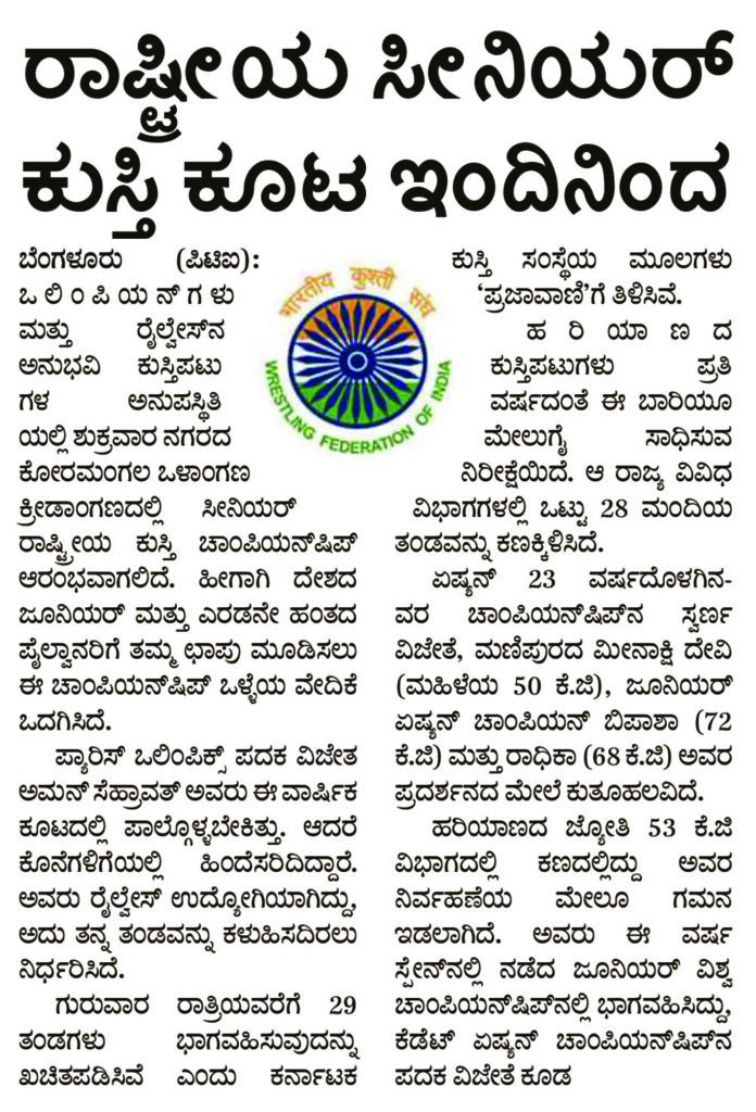 ರಾಷ್ಟ್ರೀಯ ಸೀನಿಯರ್ ಕುಸ್ತಿ ಕೂಟ ಇಂದಿನಿಂದ