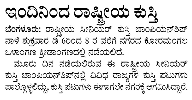 ಇಂದಿನಿಂದ ಹಿರಿಯರ ಕುಸ್ತಿ