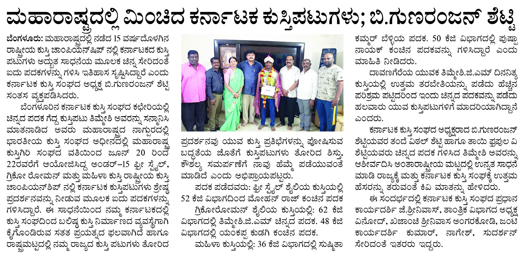 ಮಹಾರಾಷ್ಟ್ರದಲ್ಲಿ ಮಿಂಚಿದ ಕರ್ನಾಟಕ ಕುಸ್ತಿಪಟುಗಳು: ಬಿ. ಗುಣರಂಜನ್ ಶೆಟ್ಟಿ